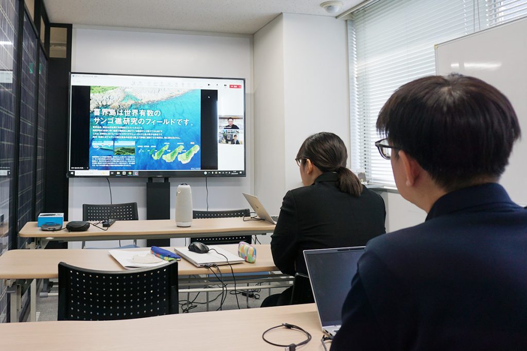 先日は『喜界島サンゴ礁科学研究所』の鈴木博士に「サンゴ礁の保全を通じた持続可能な社会への貢献」をテーマに1時間ほどのオンライン講義をしていただきました。