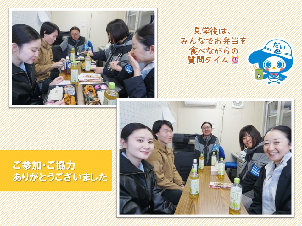 現場見学をした後は、お弁当を囲みながら懇親・質問タイムへ⏰
