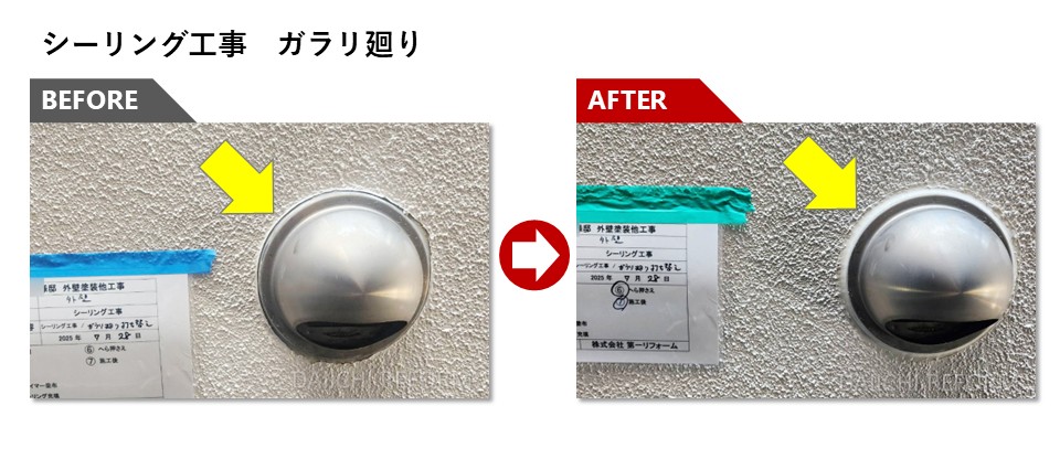 外壁の塗り替えに合わせ、ガラリ廻りのシーリングを打ち替えました。