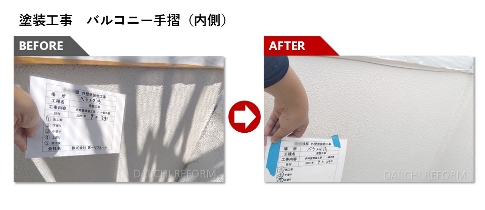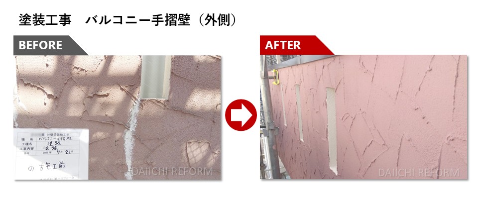 塗り替えをしてもバルコニー外壁のデザインが活かせるよう、塗料には「アートフレッシュ」を採用しました。
