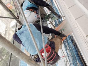 大規模修繕工事を行う際、建物の周りに工事作業をするための足場が設置されます。