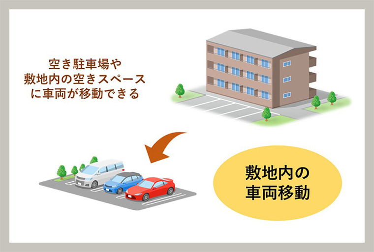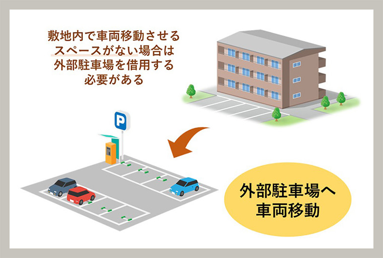 マンション敷地内で車両を移動させることができない場合は、近隣の外部駐車場へ車両を移動させる必要があります。