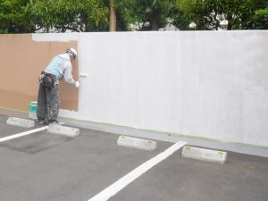 駐車場外構周りの塗装作業