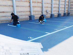 駐車場のライン引き工事作業