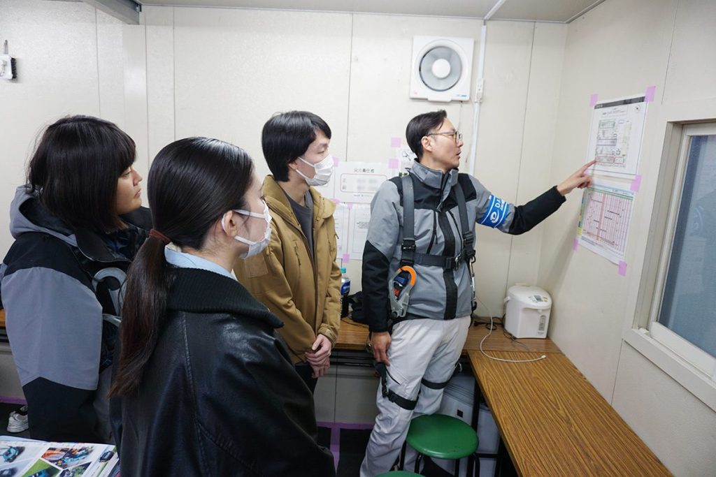 まずは事務所・作業員詰所内にて、今回訪れた工事現場の概要や一日のスケジュールについての説明からスタート。